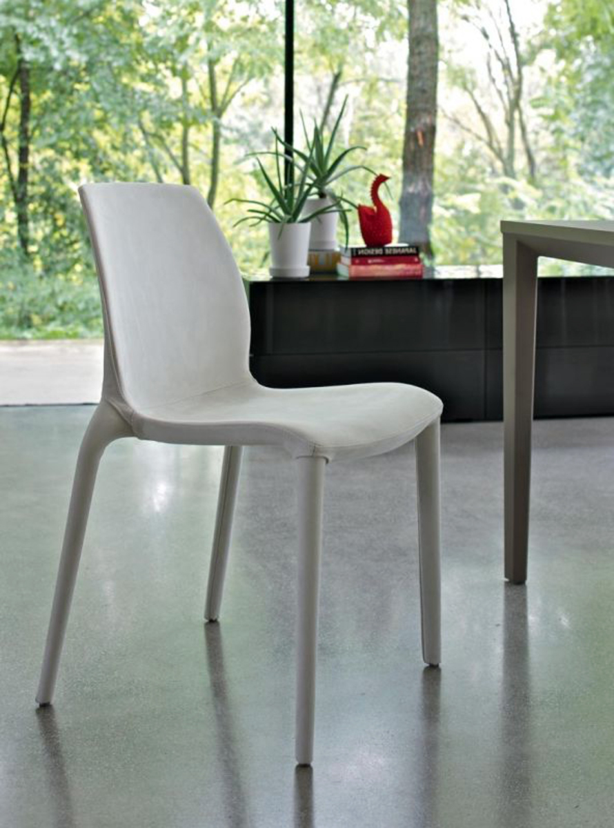 This Hydra Chair is upholstered with a flexible, ergonomic back. Materials include eco leather, premium napa leather, velvet, lulù fabric, deco fabric, waterproof nabuk, and virgin wool,
