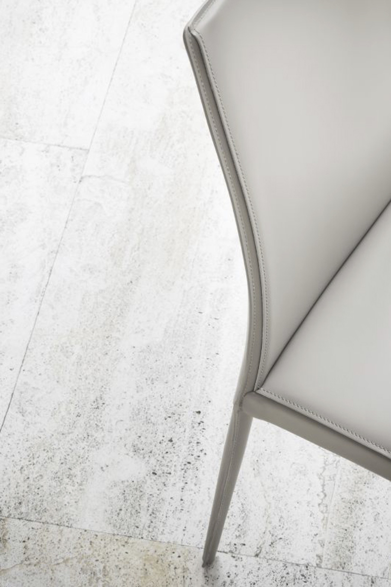 This Kefir Chair is minimal in style, intended for daily use, and is upholstered and covered in hide leather.