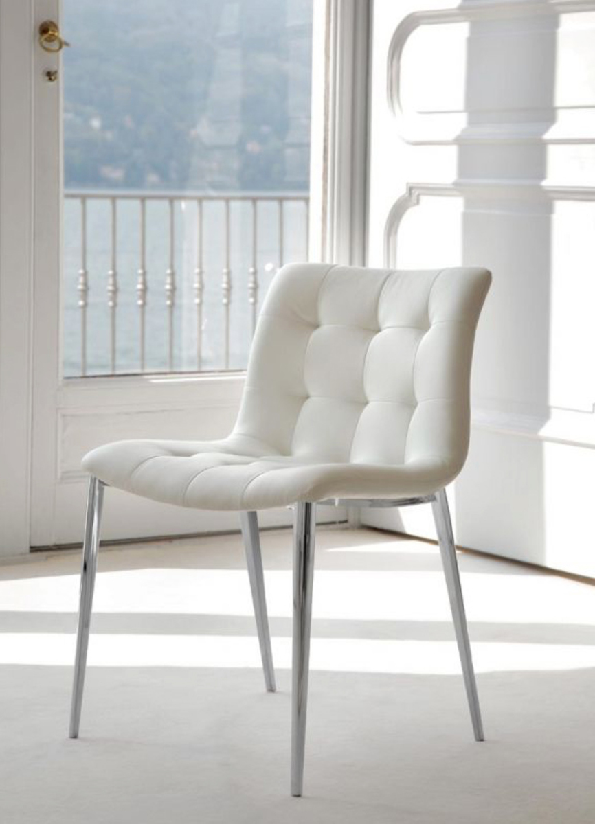 A harmonious balance of refined craftsmanship and timeless design, the Kuga Chair embodies the spirit of modern Italian elegance. Framed in solid wood with a rich dark walnut finish, its form is both sturdy and graceful, offering a sense of understated luxury. The seat and backrest are generously padded and meticulously upholstered in eco white leather, providing a soft, sustainable, and sophisticated seating experience.
