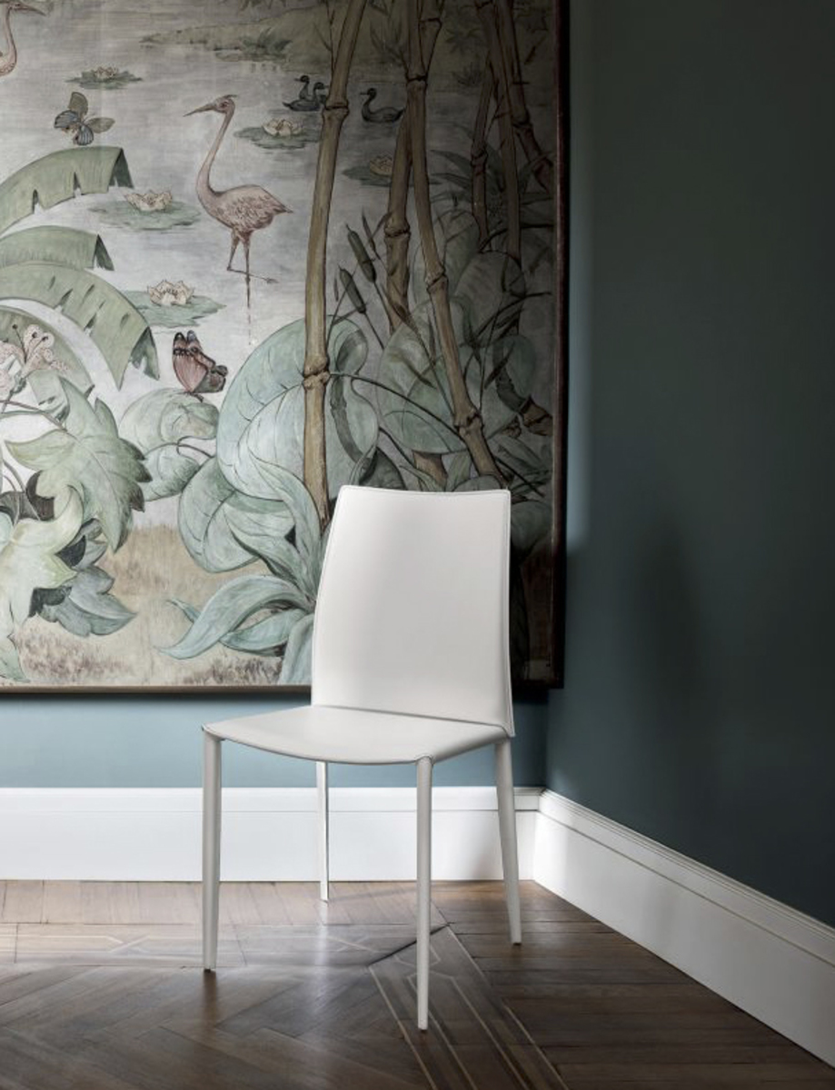 Refined, minimal, and impeccably tailored, the Linda Chair by Daniele Molteni for Bontempi Casa is a masterclass in Italian modernism. Wrapped entirely in supple white hide leather, this sleek silhouette offers a harmonious blend of comfort and elegance. Its pared-down form is accentuated by precise stitching and subtle tapering, showcasing Molteni’s commitment to quiet sophistication and functional clarity.