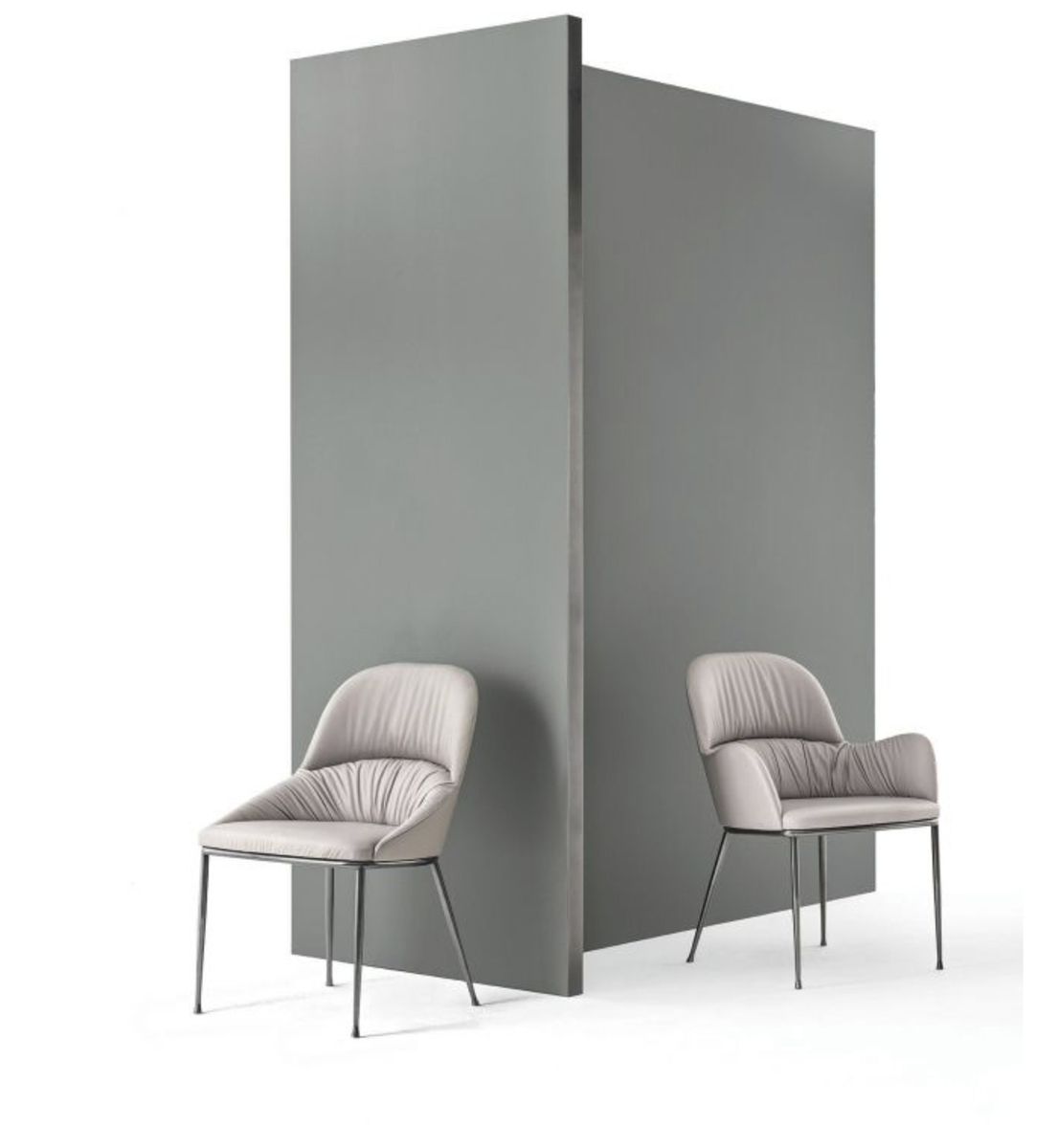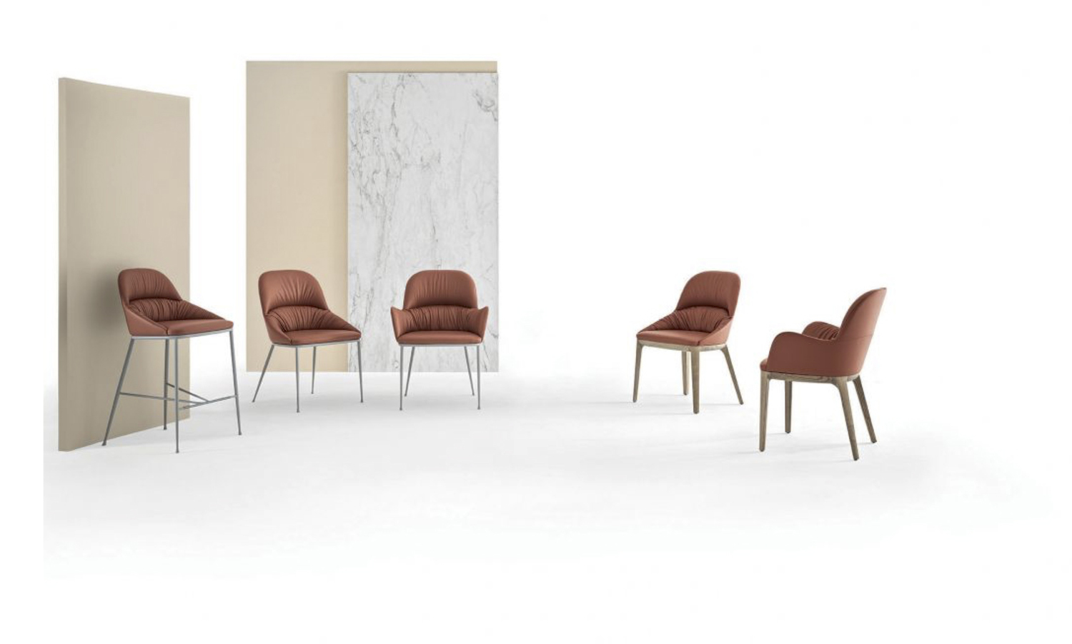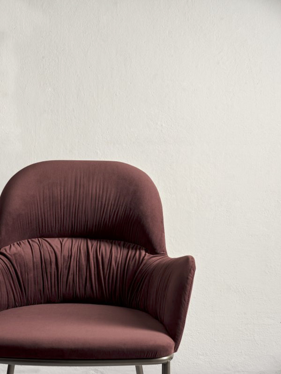 The Queen chair is a family of chairs and stools that render a simple elegance and are available in a variety of sizes and materials. These include: hardwood or metal frame, with or without arms, choices of eco leather, velvet, mambo and lulù fabric, waterproof nabuk, virgin wool, decò fabric, kvadrat field fabric, coda fabric and premium napa leather.