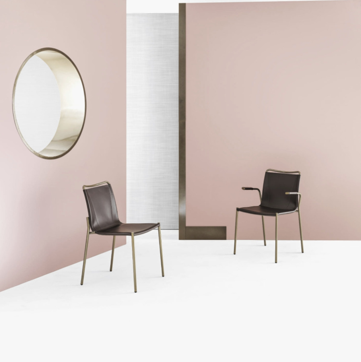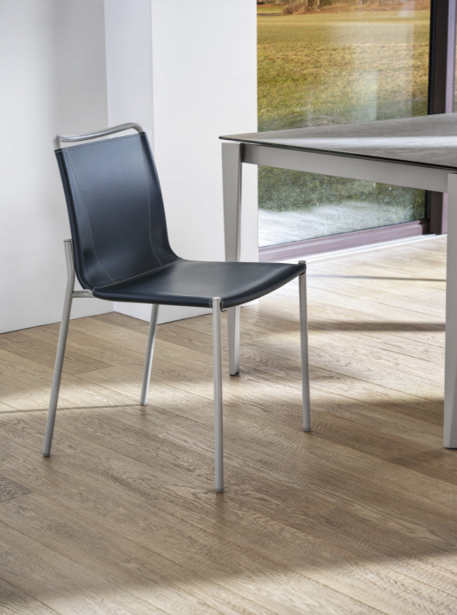 A Timeless classic, the chair upholstered in hide leather with an airy look and strong character, capable of fitting in any environment, from living room to office spaces. Available in two versions: Shape chair with or without arms. The quality of the shape chair is enriched by quality of materials.
