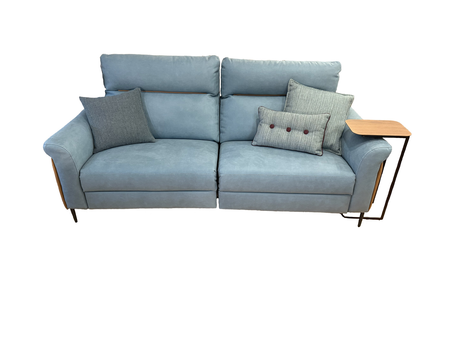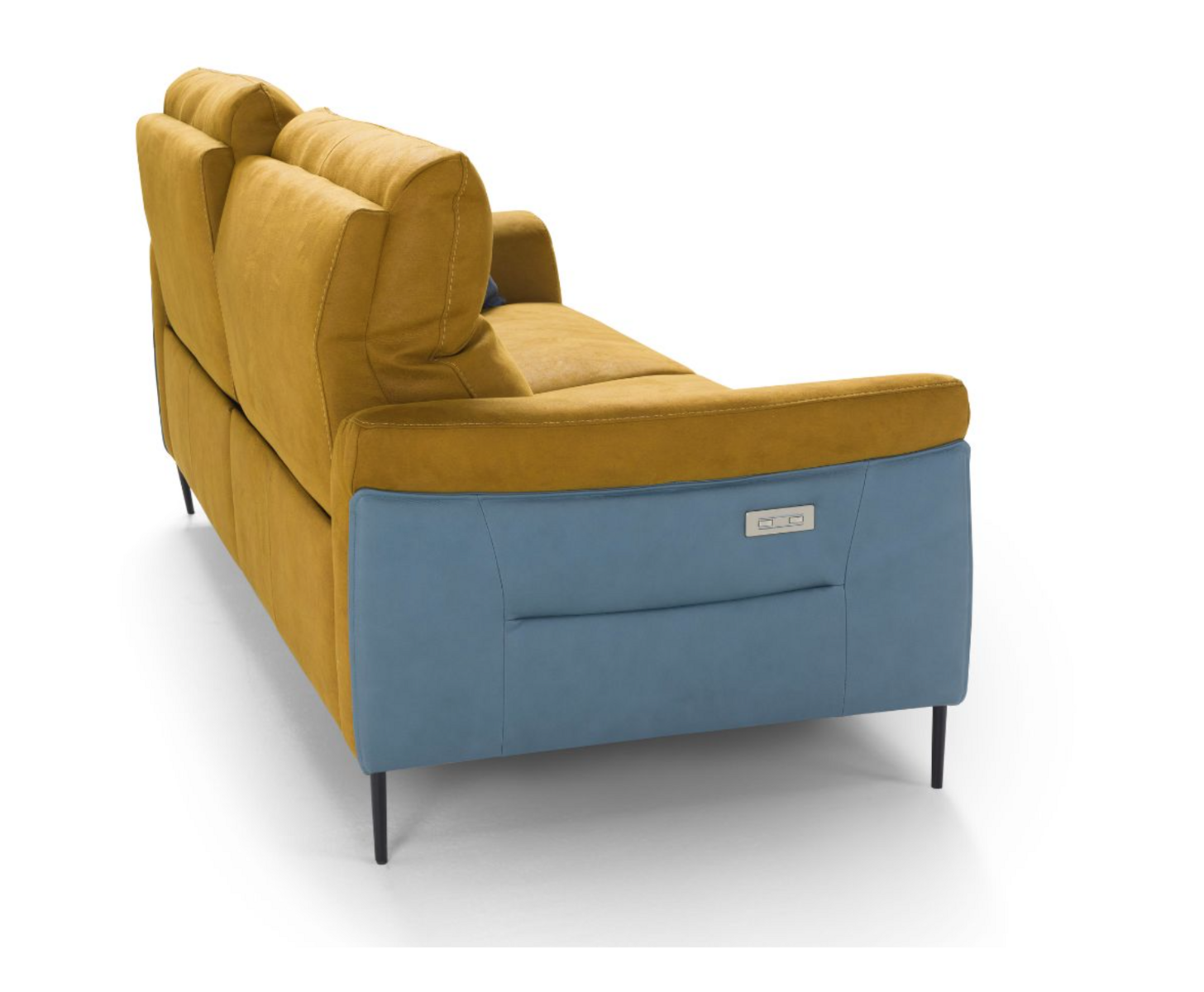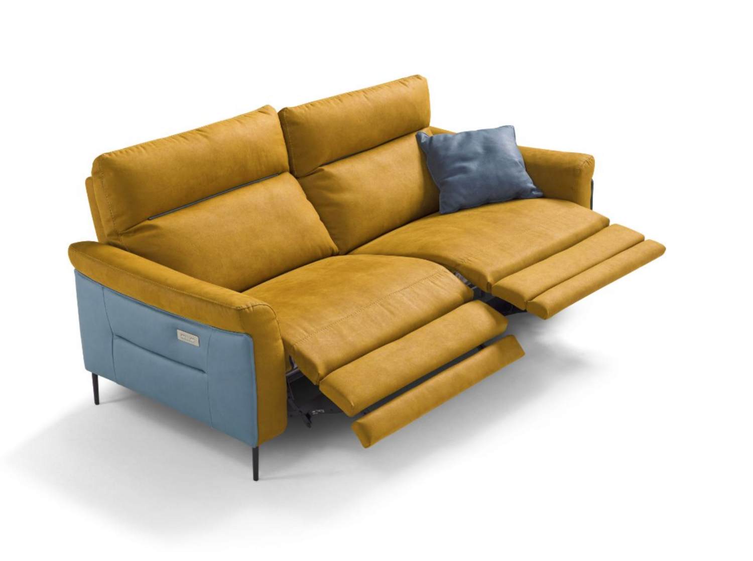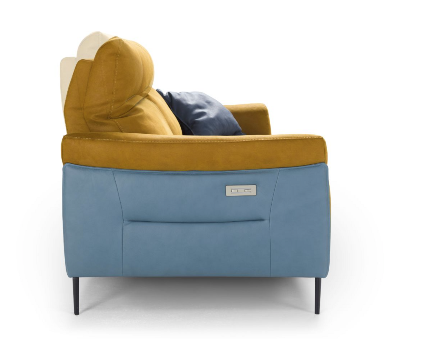 In the relaxation version, the Denver Sofa boasts a combined mechanism that synchronizes the backrest and footrest movements, available exclusively in an electric version. The controls are conveniently positioned on the outer side of the sofa for easy access. Additionally, the manual ratchet integrated into the upper part of the backrest allows you to vary the inclination of the headrest, enabling a more comfortable position for reading or watching TV. The relaxation element is designed to be detachable from the fixed element and is attached using a secure bayonet system. Central seats equipped with the electric relaxation mechanism feature touch controls positioned on the side of the seat itself, enhancing user convenience.