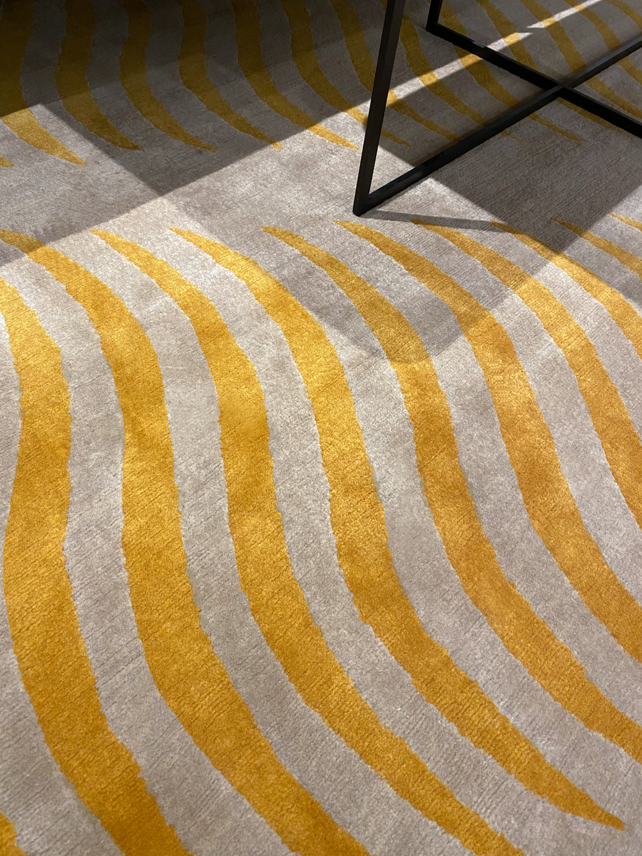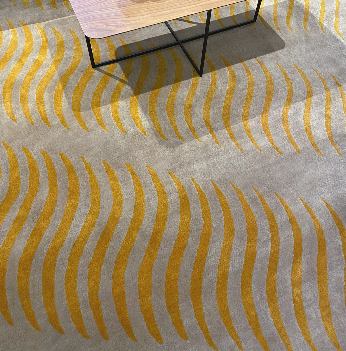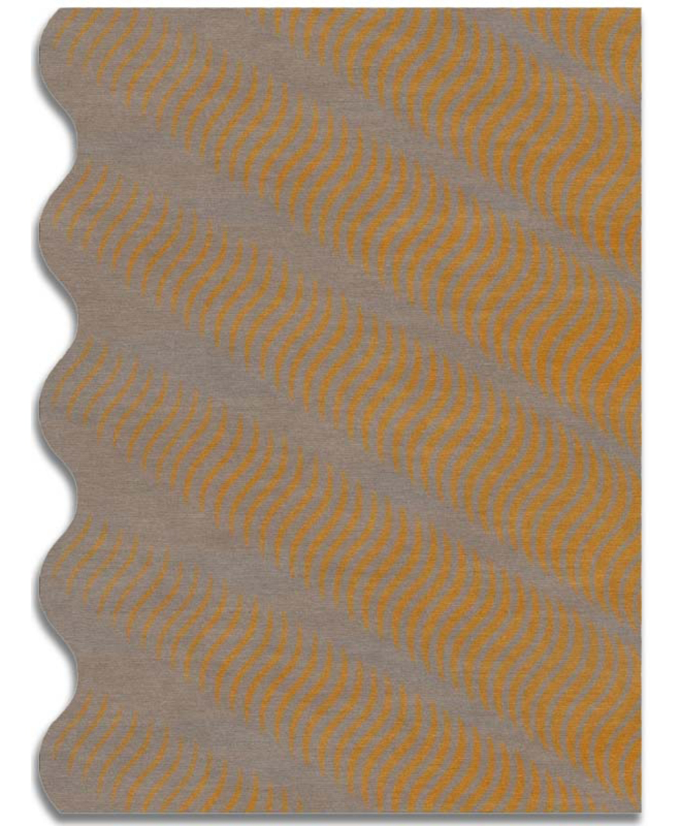 “Echo” begins with the unique edge: a long, luxurious wave, generating an imaginary sound which travels in expanding ripples. The effect is languid and sensuous, creating a calming visual rhythm across the surface of the rug. Hand-knotted by our weavers using the Tibetan knot, this carpet is made from virgin New Zealand worsted wool and natural Mulberry silk. High density knotting (121 knots per inch and above) produces a clarity of shape and continuity of color not achievable through lower knot counts (80 and below). We believe that “slow fashion”, made well with long-lasting materials and chosen with the future in mind is the obvious choice for us as responsible makers and you as aware consumers. Our carpets are modern heirlooms meant to last for generations.