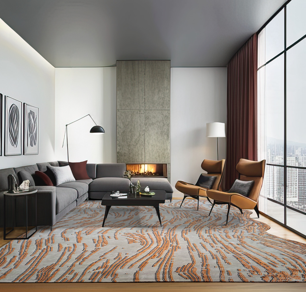 “Strata” begins with a sinuous, organic edge that seems to spill out beyond the boundary of the rug. Layer upon layer, its gently swirling waves meander like a memory of an ancient flowing river, rendered in luminous silk on wool. Hand-knotted by our weavers using the Tibetan knot, this carpet is made from virgin New Zealand worsted wool and natural Mulberry silk. High density knotting (121 knots per inch and above) produces a clarity of shape and continuity of color not achievable through lower knot counts (80 and below). We believe that “slow fashion”, made well with long-lasting materials and chosen with the future in mind is the obvious choice for us as responsible makers and you as aware consumers. Our carpets are modern heirlooms meant to last for generations.