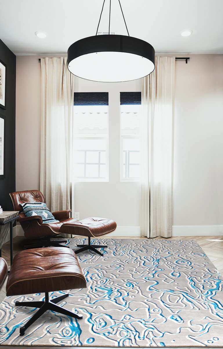 Designed by Fida Nehme and Eva Sutton, Ion’s two shades of blue Mulberry silk reference water running across a surface in meandering rivulets and create an illusion of layering and transparency. The naturally shimmering, reflective quality of silk is integral in creating Ion’s fluid, watery feeling. Hand-knotted by our weavers using the Tibetan knot, this carpet is made from virgin New Zealand worsted wool and natural Mulberry silk. High density knotting (121 knots per inch and above) produces a clarity of shape and continuity of color not achievable through lower knot counts (80 and below). We believe that “slow fashion”, made well with long-lasting materials and chosen with the future in mind is the obvious choice for us as responsible makers and you as aware consumers. Our carpets are modern heirlooms meant to last for generations.