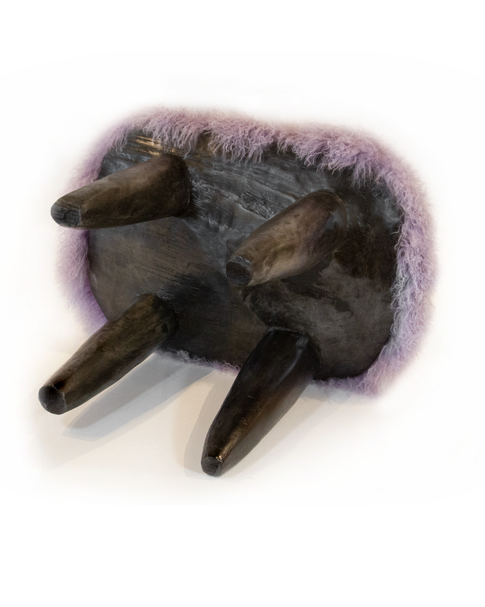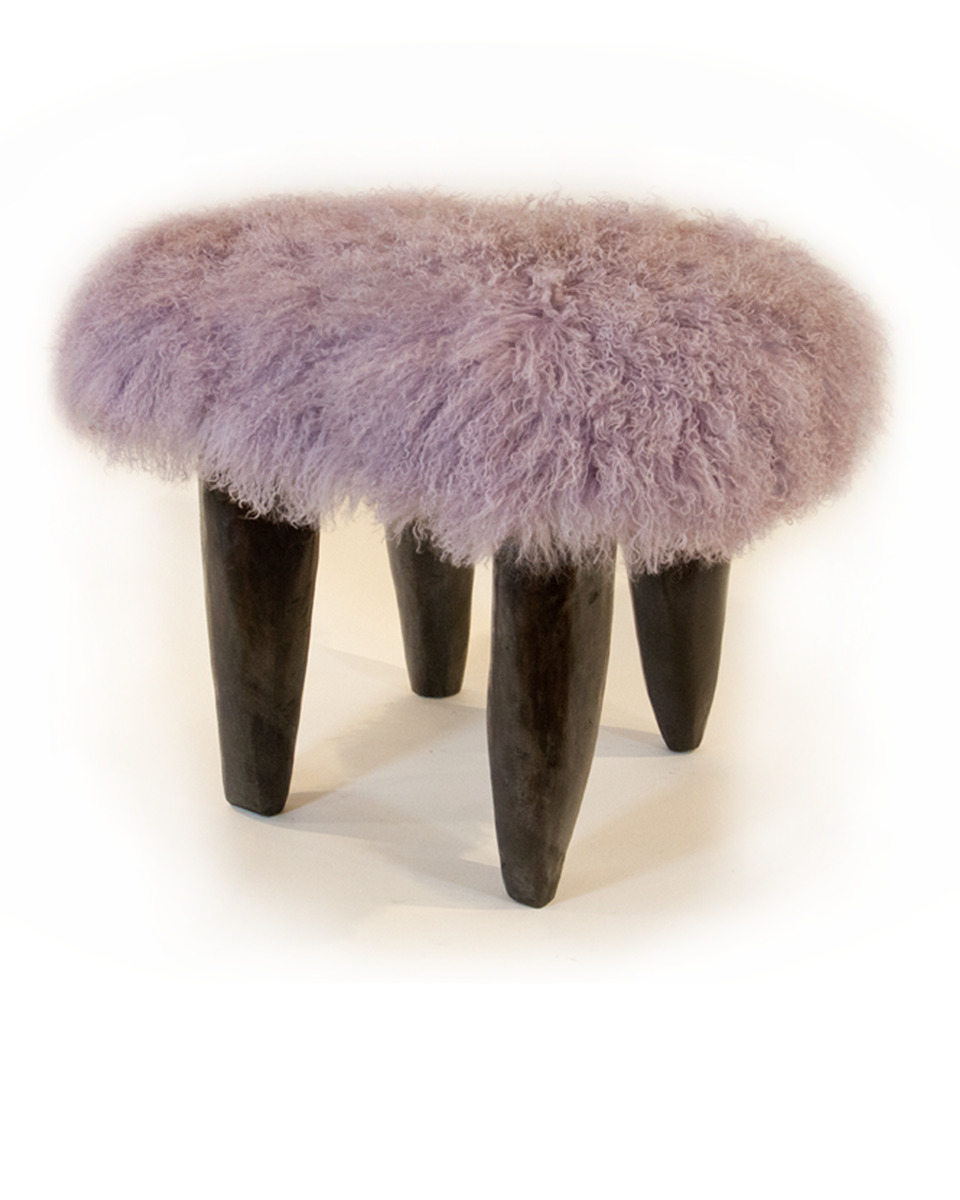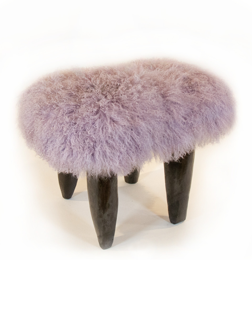The Fufu is an artfully conceived, whimsical stool, with a base carved from a single piece of hardwood and a seat fashioned from soft, Mongolian sheepskin. Made entirely by hand, each Fufu Stool is unique.
