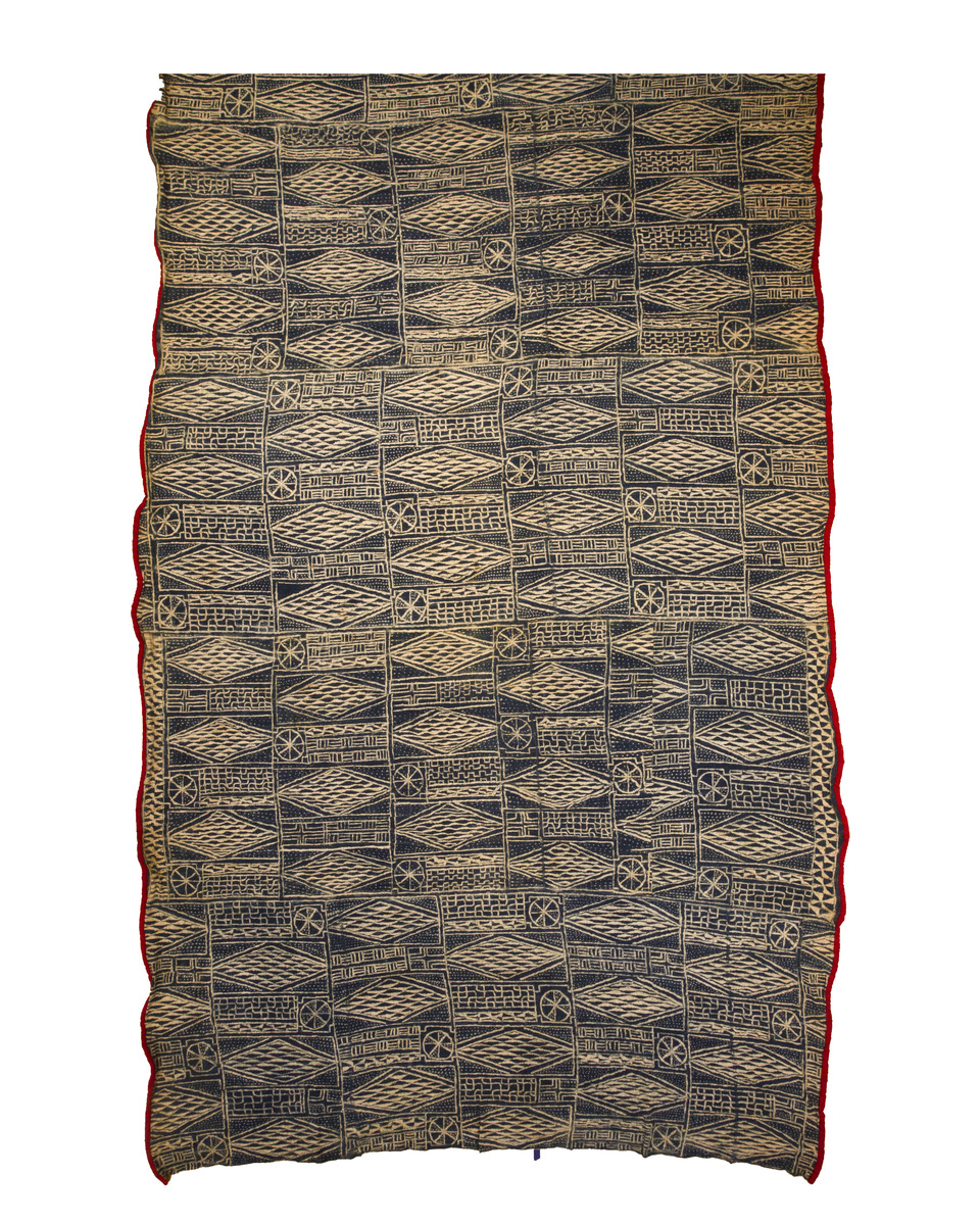 This magnificent and exceptionally rare Ndop cloth, created by the Bamileke or closely related Grassfields peoples of Cameroon, is a masterwork of indigo-resist dyeing (ndop technique). Measuring an extraordinary 106 by 198 inches, this textile is among the largest and most intact examples known from the early to mid-20th century. It remains in remarkably good condition considering its age and the highly ceremonial contexts of its historical use.