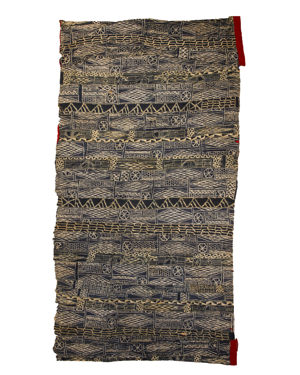 This exquisite Ndop cloth from Cameroon is a remarkable example of the traditional textile art of the Bamileke people and its production has a long history, dating back several centuries. The cloth was originally made by women and was an important symbol of social status and cultural heritage, with different patterns and designs used to represent different clans and lineages.