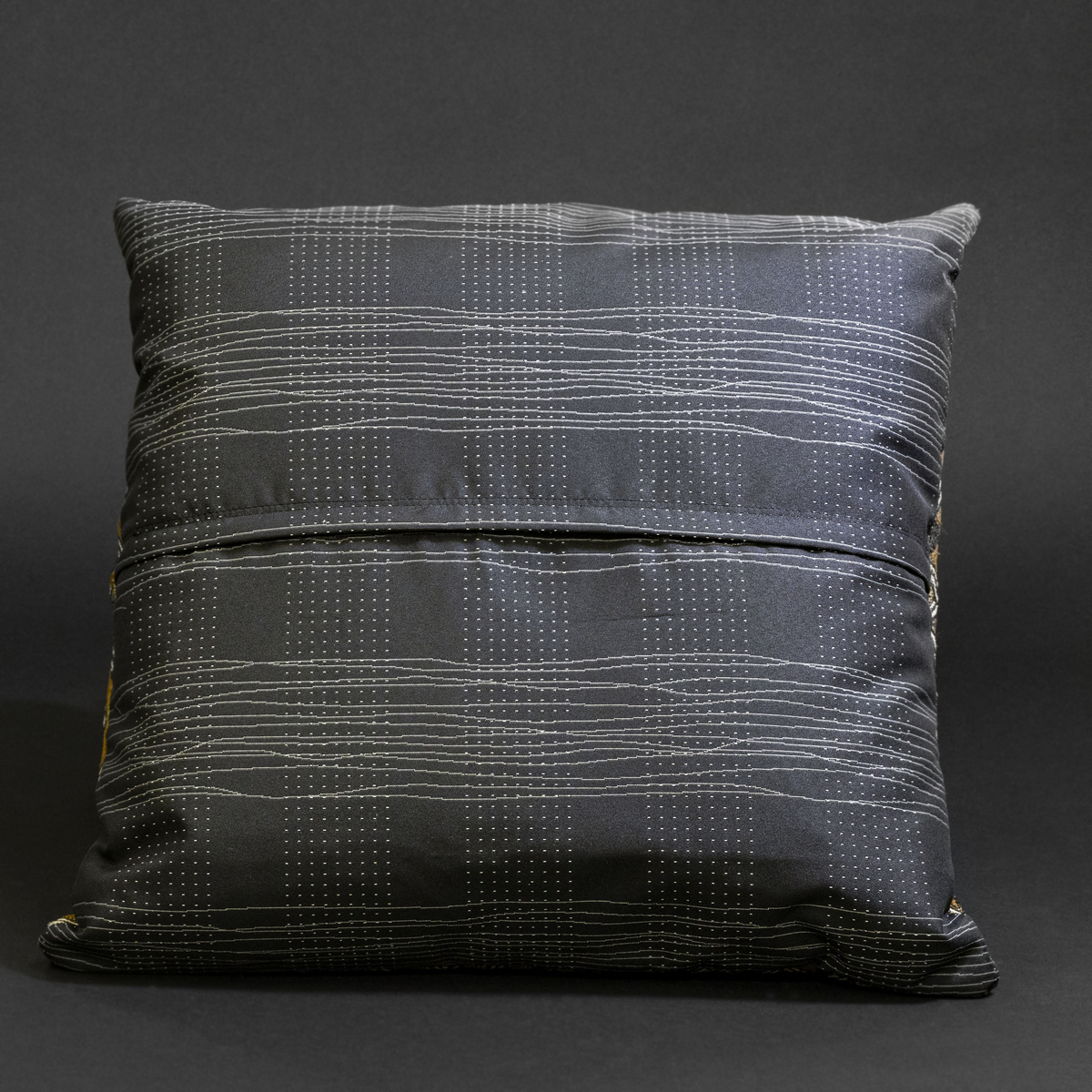 Historically, such textiles were worn as prestige regalia, gifted in court ceremonies, or used to mark transitions in life and status. The compositional diversity of this patchwork—each fragment once a complete artistic statement—mirrors the Kuba belief in collective identity: multiple voices contributing to a unified whole. The result is not just a pillow, but a living document of cultural expression and generational artistry.
