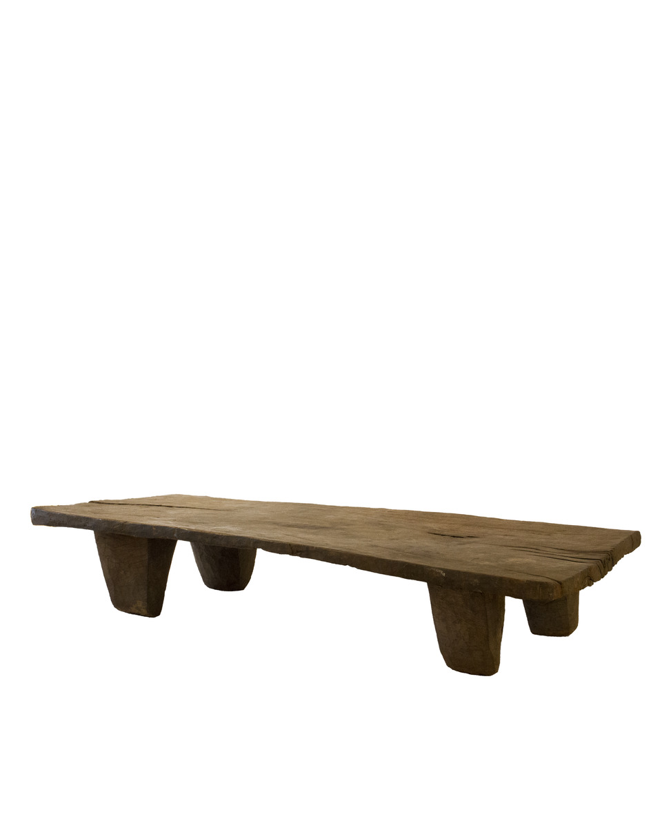 These beds are designed and constructed by the largely animist, Senufo People from West Africa, particularly in the regions of Ivory Coast, Mali and Burkina Faso. The simple elegance of this bed enhances its sculptural quality as a functional work of art. It features a mainly flat surface with minimal adornments. The bed with its tapered legs is carved from a single tree trunk. It is marked by a rich, dark brown patina with no signs of indigenous repairs. In traditional Senufo culture, these beds were used for important rituals such as births and weddings and were considered a symbol of wealth and status. They were also used for sleeping and relaxation. Senufo beds are now highly sought after by collectors and museums, and are considered to be important examples of African tribal art.