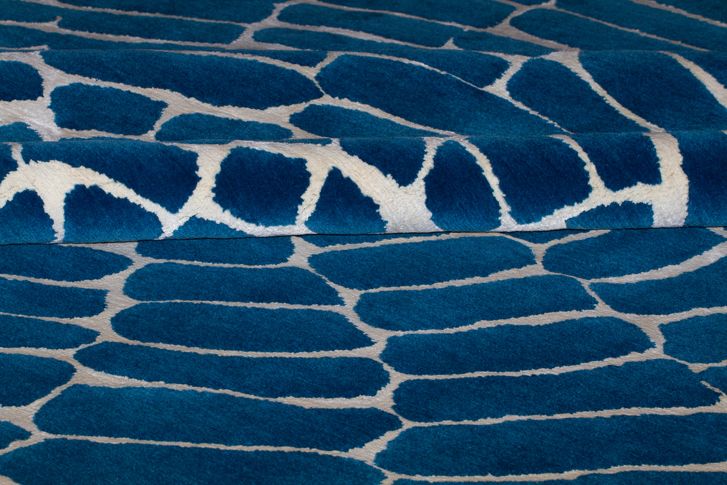 Hand-knotted by our weavers using the Tibetan knot, carpets from our Modern Heirlooms Collection are made from virgin New Zealand worsted wool and natural Mulberry silk. High density knotting (100 knots per inch and above) produces a clarity of shape and continuity of color not achievable through lower knot counts, (80 and below). We believe that “slow fashion”, made well with long-lasting materials and chosen with the future in mind is the obvious choice for us as responsible makers and you as aware consumers. Our carpets are modern heirlooms meant to last for generations.