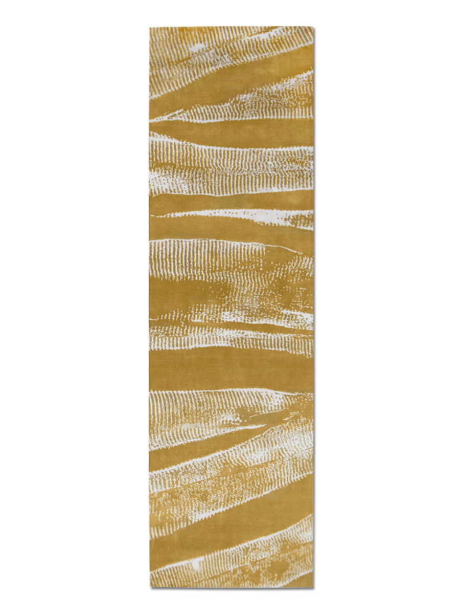 Designed by Fida Nehme and flowing with gentle geometry, Ebu references the rhythmic sand patterns made by ocean waves as the tide goes out. Realized here in cream on yellow, its long organic shapes are both dramatic and subtle. Hand-knotted by our weavers using the Tibetan knot, this carpet is made from virgin New Zealand worsted wool and natural Mulberry silk. High density knotting (121 knots per inch and above) produces a clarity of shape and continuity of color not achievable through lower knot counts (80 and below). We believe that “slow fashion”, made well with long-lasting materials and chosen with the future in mind is the obvious choice for us as responsible makers and you as aware consumers. Our carpets are modern heirlooms meant to last for generations.