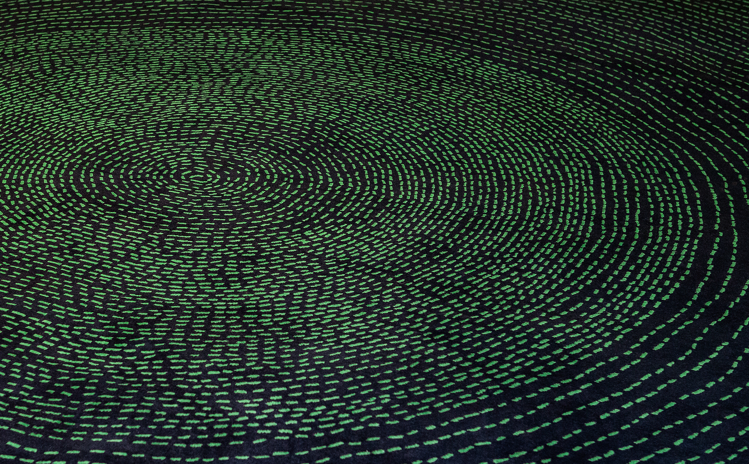 Designed by Fida Nehme, Orbita is an emerald orb, starting at its center and spiraling outward like a deep green galaxy. Its deliberately irregular dashes emphasize the quality of something drawn by hand. The overall effect is both playful and mesmerizing. Hand-knotted by our weavers using the Tibetan knot, this carpet is made from virgin New Zealand worsted wool. High density knotting (121 knots per inch and above) produces a clarity of shape and continuity of color not achievable through lower knot counts (80 and below). We believe that “slow fashion”, made well with long-lasting materials and chosen with the future in mind is the obvious choice for us as responsible makers and you as aware consumers. Our carpets are modern heirlooms meant to last for generations.
