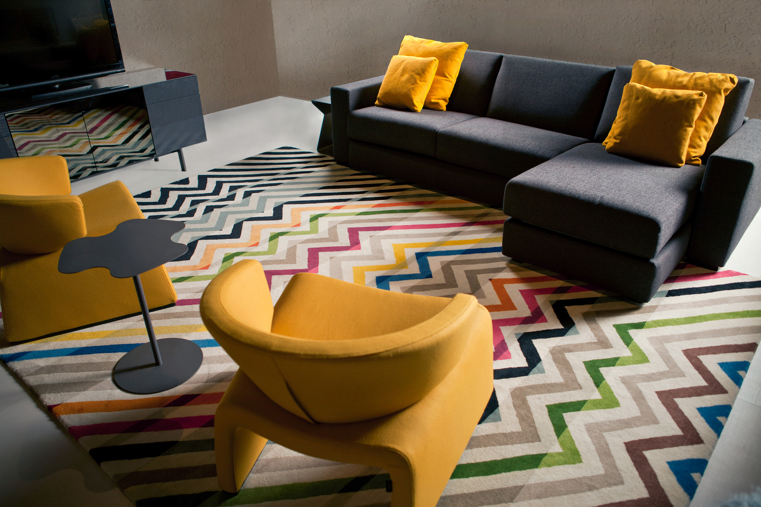 Designed by Fida Nehme, Marmousha’s vibrant colors make it a welcome modern addition to rooms with a wide variety of color palettes. It’s energetic zigzag pattern of parallel stripes traverse the expanse of the rug and create a strong directional movement across its surface. The inclusion of black and white stripes add a classic touch. Hand-knotted by our weavers using the Tibetan knot, this carpet is made from virgin New Zealand worsted wool. High density knotting (121 knots per inch and above) produces a clarity of shape and continuity of color not achievable through lower knot counts (80 and below). We believe that “slow fashion”, made well with long-lasting materials and chosen with the future in mind is the obvious choice for us as responsible makers and you as aware consumers. Our carpets are modern heirlooms meant to last for generations.