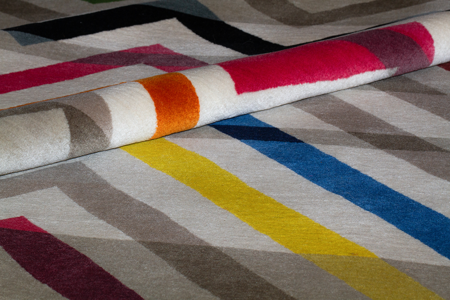 Designed by Fida Nehme, Marmousha’s vibrant colors make it a welcome modern addition to rooms with a wide variety of color palettes. It’s energetic zigzag pattern of parallel stripes traverse the expanse of the rug and create a strong directional movement across its surface. The inclusion of black and white stripes add a classic touch. Hand-knotted by our weavers using the Tibetan knot, this carpet is made from virgin New Zealand worsted wool. High density knotting (121 knots per inch and above) produces a clarity of shape and continuity of color not achievable through lower knot counts (80 and below). We believe that “slow fashion”, made well with long-lasting materials and chosen with the future in mind is the obvious choice for us as responsible makers and you as aware consumers. Our carpets are modern heirlooms meant to last for generations.